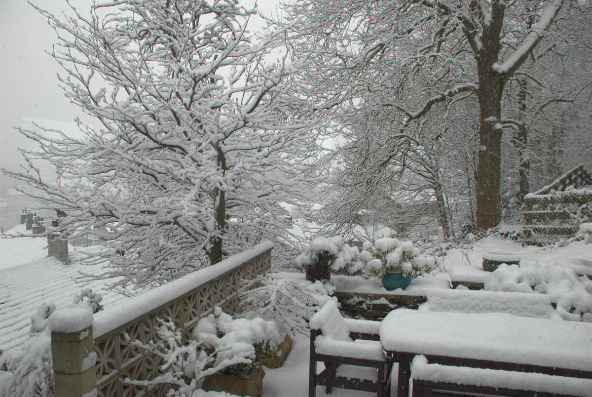 Looking out from the back garden in winter