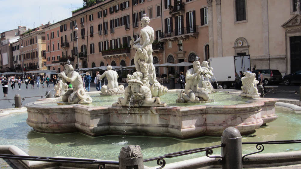 The two other fountains on the piazza are the Fontana di Nettuno (Neptune fountain) at the northern end and the Fontana del Moro (Moor fountain) at the southern end.