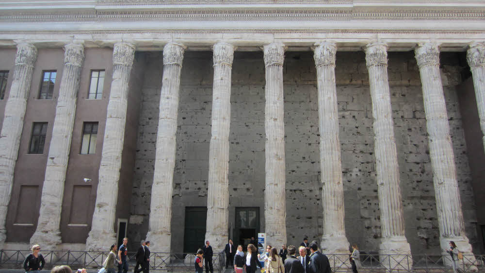 Of the original Temple of Hadrian, only one row of 11 columns is still visible today as part of a 17th century stock exchange building.