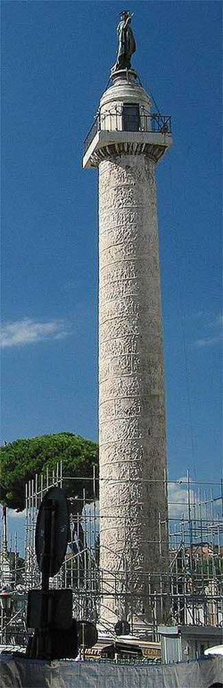 The Trajan column including its base is 42m high (138ft). This was exactly the height of the hill that stood at this site. It had been leveled to create an open space for the construction of Trajan's Forum.