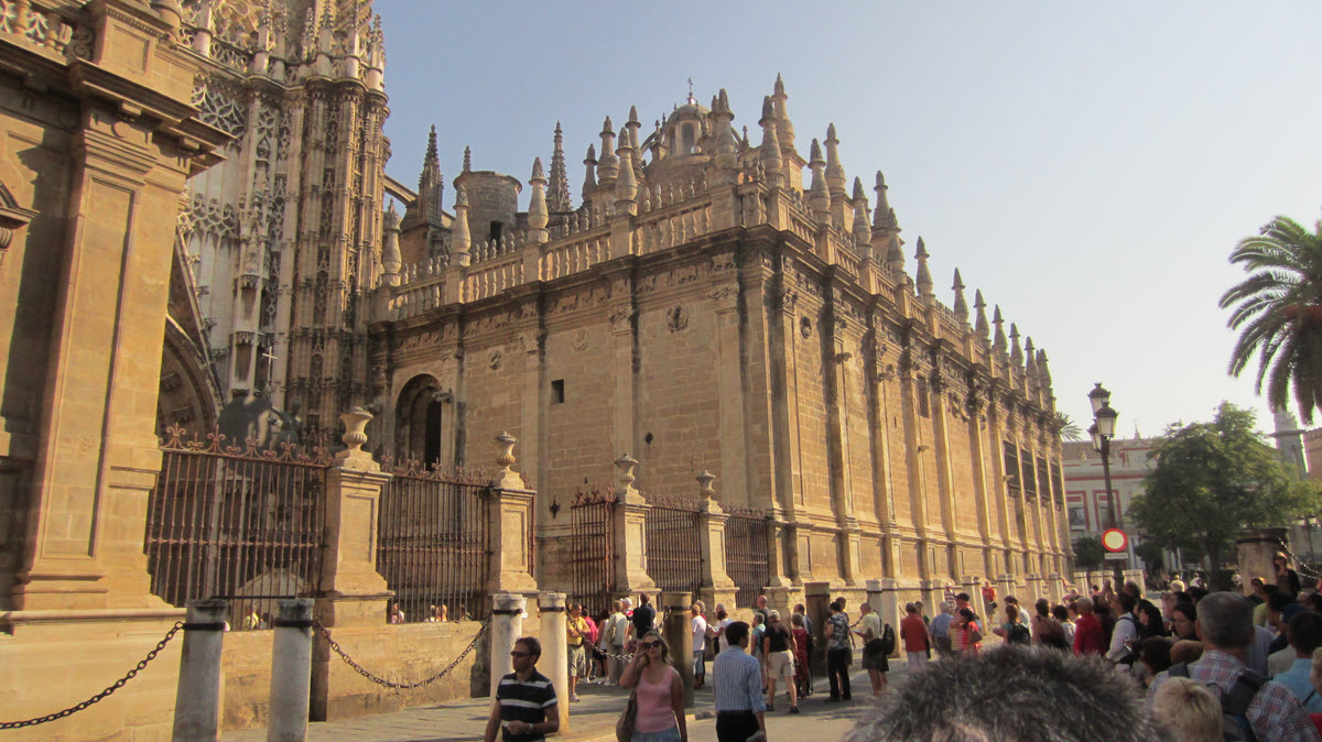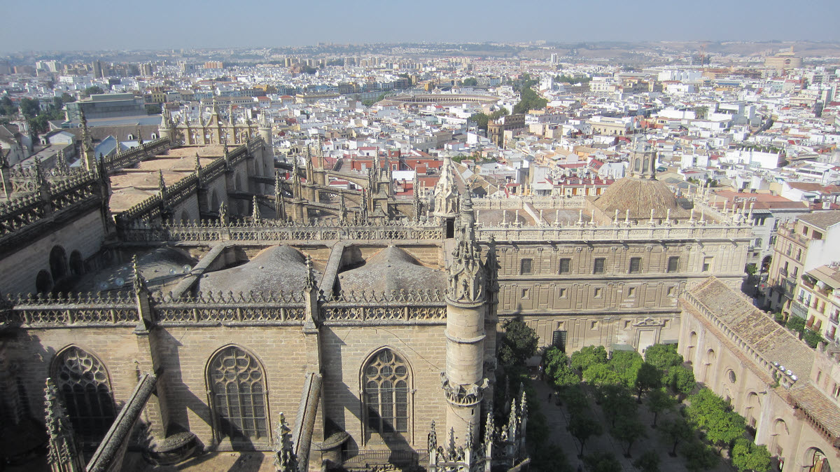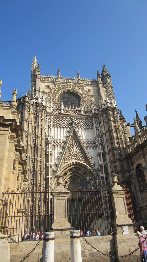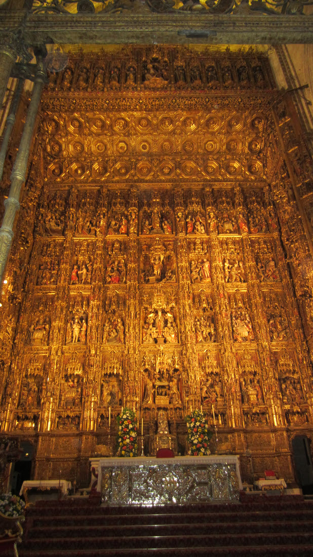 The third largest cathedral in the world, behind only St. Peters in Rome and St. Paul's in England. The Cathedral does hold the record as the largest gothic building in the world. This is the most visited site in Seville. Construction began in 1401 on the grounds of the center mosque constructed during Arab occupation. The Patio de Naranjos and the main section of the Giralda are the only structures remaining from the mosque. The climb up the Giralda, approximately 70 meters, is made easier with the absence of stairs. Instead a series of ramps leads you to the top for a perfect view of the city. Inside are works of by Murillo, Goya, Pedro de Campaña and Luis de Vargas. Sculpture includes works by Martinez Montañés. The tomb of Columbus is located here as well.