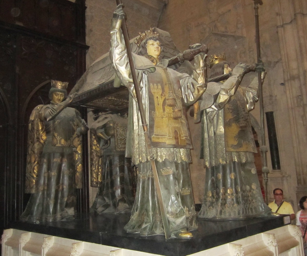 Pity about the flash. Right: the tomb of Christopher Columbus voted number one Seville sight on Lonely Planet {well it's all those Americans.. right ?}