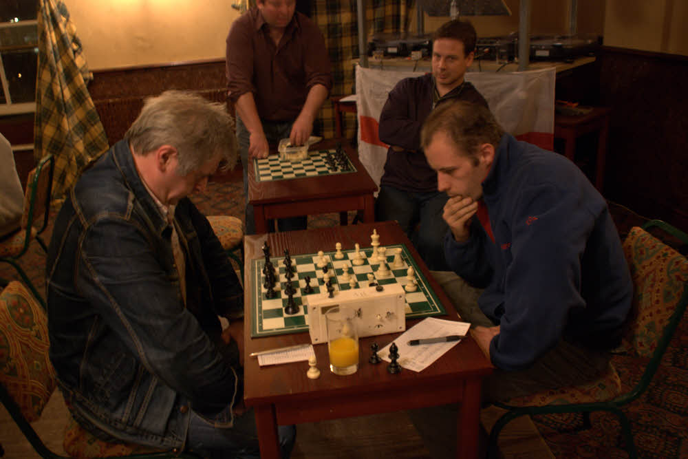 4-0 up at home and cruising things seemed to be going smoothly for Netherton, but then Ron Atkinson ran into double trouble - time and position against Richard Caufield and was glad to get out with a draw. Then - in the last game to finish - Peter Shaw lost to Individual KO finalist Dave Gray !