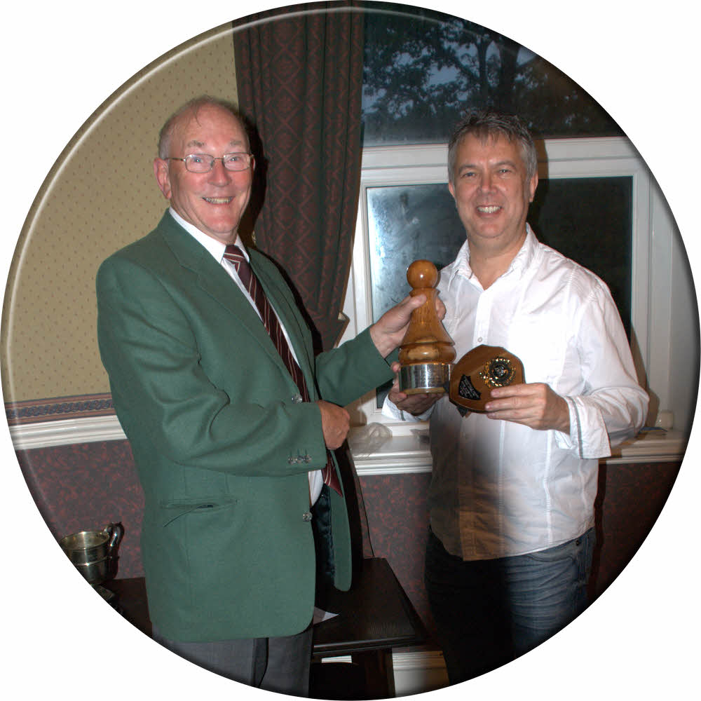 Peter Shaw receving the Bill Lumley Rapidplay trophy {Netherton A}