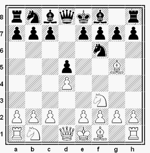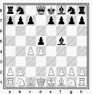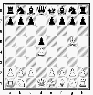 1.d4 d5 2.c4 Bf5 This defence intends to solve the problem of the "problem child" - the QBishop, which is often hemmed in in other defences to the QG.