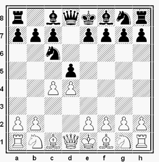 1.d4 d5 2.c4 Nf6 Black defends the d5 pawn with the Knight. This is considered dubious because of 3.cxd5 Nxd5 4.e4 which is 80% White
