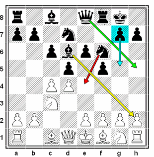 White establishes a strong fianchettoed K Bishop and plays a Queen’s Gambit.