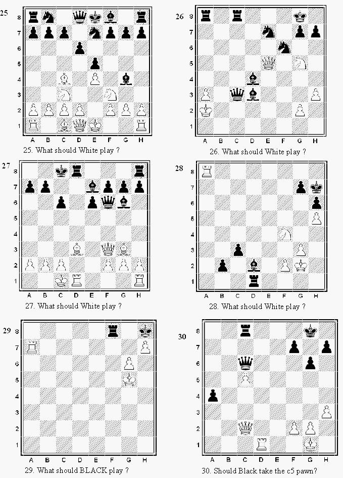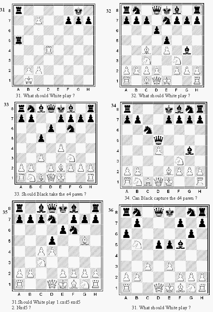 The examples here follow on from Basic Tactics Quizzes 1 and 2, covering basic chess tactics such as forks, pins, X-rays / skewers, double attacks, double checks, discovered checks, the "see saw", undermining moves, eliminating defenders, luring defenders away, deflection, back rank and side edge mates, smothered mates, overloading, disrupting communication, zugswang, zwischenzug, unprotected pieces, tempo, themes such as weakness of f7(f2 White), weakness of h7 (h2 White), "Greek Gift" sacrifice, weakness on e8-h5 diagonal (e1-h4 diagonal White)